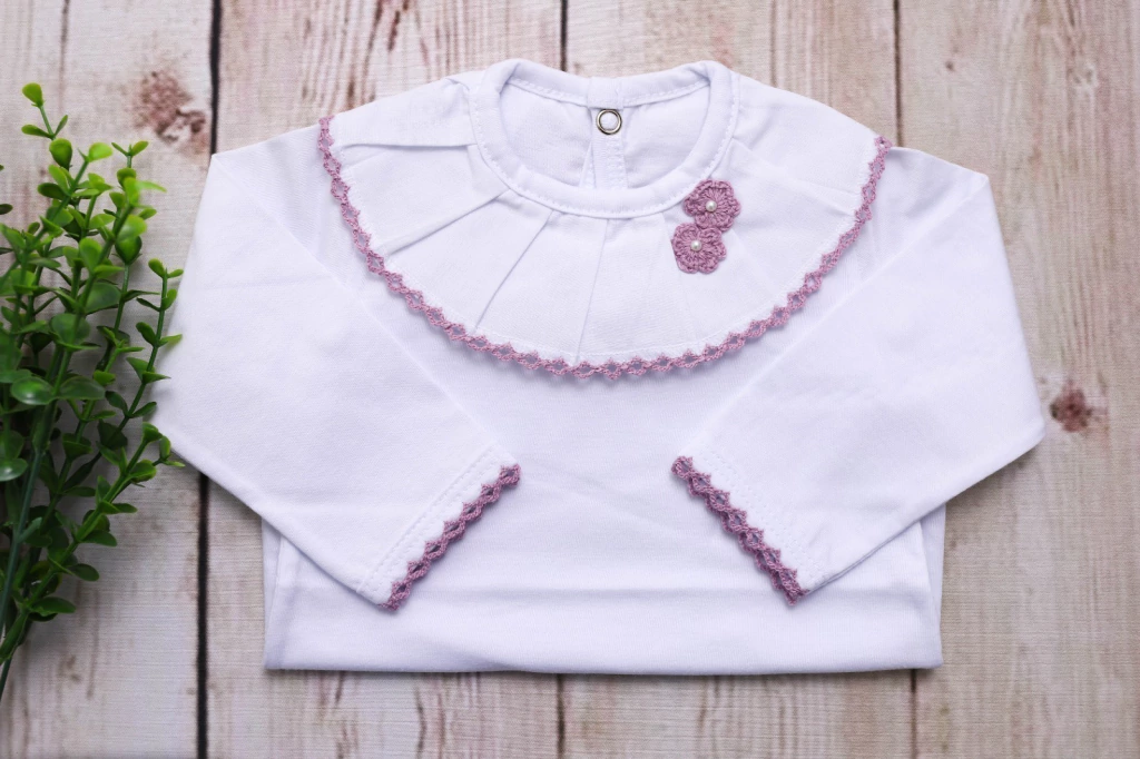 · Body de algodão com gola bordada e aplique de flor, punhos bordados, com abertura entre as perninhas e nas costas..